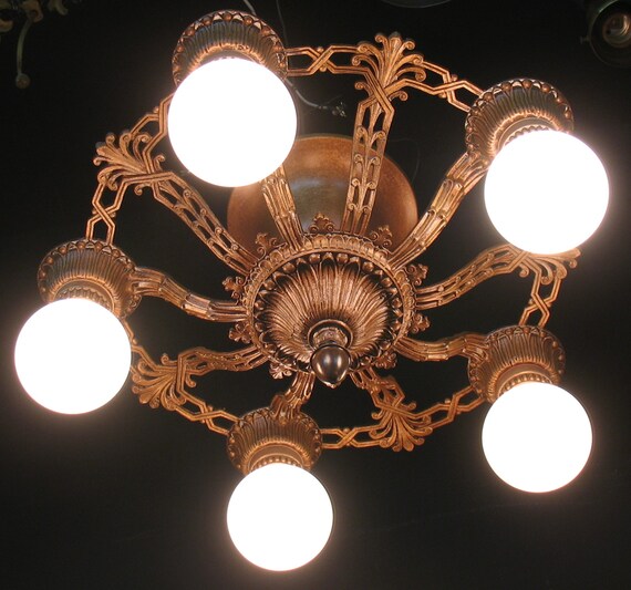 Antique 1920 S 5 Bulb Semi Flush Light Fixture Heavy Cast Etsy
